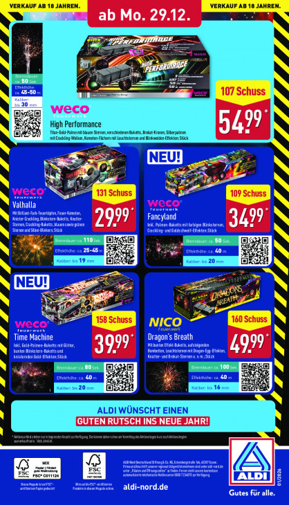 Bitte beachten Sie, dass dieser Text automatisch generiert wird und möglicherweise Fehler enthältVERKAUF AB 18 JAHREN. VERTE AB 18 JAHREN. + == Jill ME 3 LE id 7 Te = 124 et N 77 ak L [1 TH: 1 ® Wr af ee fl M Erie En TA CERTES ed PE pir — mm) Zen Effekthöhe — Etes a nr co libs Me EE weco 3 Ta 7 d Ed Lit I K€ NEU! == D} | Th Pi PV 2 er Æ 7 w weco' a ue & rn weco Valhalla TER CES Mit Brllant-Farb-Feuertöpfen, Feuer-Kometen, Knister-Crackling, Blinkstern-Buketts, Knatter- Fancyland 4 ) Sternen, Crackling-Buketts,blauensowiegrünen Inkl. Palmen-Buketts mit farbigen Blinksternen, Tu Sternen und Siber-Blinkern; Stück Crackting- und Golds chweif-Eifekten;Stück. Ra Tei Brenndauer: ca. 110 sek. ale Brenndauer: ca. BO Sek % CE Effekthöhe: ca. 25-45 m Effekthöhe: ca. 40 m b Eli: A (794 ee Be _ 7 En PS E => ee A6 Der = 7 Mers weco OPENEN Feuerwerk Time Machine Dragon’s Breath ‘| Inkl. Gold-Palmen-Buketts mit Glitter, Mitbunten Effekt-Buketts, aufsteigenden À 1 ‘à bunten Blinkstern-Buketts und JO EN ES ELEN a: Tr % knisternden Gold-Effekten; Stück. Knatter- und Brokat-Sternen u. v.m.;Stück Brenndauer: ca. BO Sek. Brenndaver: ca. 100 Sek. WO] BE GIBSON 1 B, er, Effekthöhe: ca. 40 m Ë zl ca, + S mL ALL A CLÈLLLTIS 4 DIT ESC CE rin bag BEVAL CRAN TT ENS MX ALDI Nord Deutschland Stiftung8 Co.KG, Eckenbergstraße16b,45307 Essen. FSC FrmaundAnschüft unererregionaltäligenUntemehmen sind unerali-nor. de Fi gute Wakinutzung wrr unter „Flalenund ffnungszelen” finden Fernerstehtunsere kostenlose im _ FSC* C011124 pac vooren ENA ROER Edet A CE Le En 01/2026 nen LEE EN Dre re aldi-nord.de Gutes für alle.