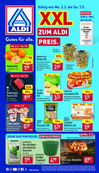 Bitte beachten Sie, dass dieser Text automatisch generiert wird und möglicherweise Fehler enthältXXL = Preis- Leistungs- [ALDI Sieger A 1. Platz 2026 ALDI Gutes für alle. min pe” Lc PREIS. R, CE >= x ES 2 Ee ) VIR ne £- = N hr ht da Thelen od mA CUS ie) 5 ! BIO ac ® Rinderha Ha : Il fleisch XXL 727 800-9-Packung; JJ (kg = 12.49); Seite 4 Bi 19° pre RAGE sf FF Ja logt; 5 jj 1 er zn Sahne-Joghurt Versch. Sorten, z B.Erdbeere Te oder Panna cotta Pfirsich; a J 140-g-Becher kg =29) GARDENLINE mo: Bio-Hochbeet- 2 D 7 = 2 und-Gewächs- > Oi hauserde = mi 2 20-L-Beut - 4 (lter=0.10);Seite14 GARDENLINE Flexibler BEN Tragekorb 79 "EED-Solar-Metalltier Stück; Seite 15 . STE A * Aktionsartikelstehen urin begrenzter Anzahl zur Verfügung. Sie können daher schonam Vormittag des Aktionstages kurz A NI ATG NEN CL ANR ER er Tet OO@OM SL aunorase CEST EE NTS NEN een Zeiten der Aion ausvrkauftsein.DieMarke ALDI steht nach Ansich der vonYouGovbefraten Verbraucher fürdas beste Pre