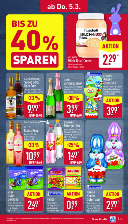 Bitte beachten Sie, dass dieser Text automatisch generiert wird und möglicherweise Fehler enthältab Do. 5.3. BIS ZU nusskati MILCH-NUSS KS (héme G, > 0% "AKTION NUSSKATI Milch-Nuss-Creme Süßer Brotaufstrich; 2 400-g-Glas (kg =5.73) REL 1 CAPTAIN MORGAN MUMM inder Spiced Gold/ F Jahrgangssekt gf Oster-Mix Dark Rum Versch. Sorten, z. B. Wei. ECTS 35 % Vol. oder 40 % Vol; er oder Rosé; 0,75--Flasche Denen = ÉTAT I) (Liter=5.32) DATE U un (il ain Mo 5 % ED ve 99 - 999 : 99 UVP 42-99 | UVP 6-49 F Passt perfekt | SCHWEPPES f Nas Bittergetränk £ Versch. Sorten, z.B. Tonic Blanc/Rosé 5 Water oder Wild 0,75-| Aperitif; 17% Vol. lasche \ EU AET ERLE NAMEN | | ae [CS 19) % 99 49 $ ren Son WET dies q = 8 en = Kinder HARIBO ra | HARIBO) Spiegeleie: Mopbikarorrijk a" DS N SAT AE 4 hal re ZN DT $ m1 STELLER) MILKA | FERRERO Oster- Kinder Bonbons Haribo Osterhase ml KET GAN Versch. Sorten, LEEREN GEAR Oreo oder Alpenmilch: 2.8. Hoppi Karotti mit Ù-Ei oder ohne; RT 2 oder Spiegeleer 1] KISTEN EL er) 175-g-Beutel (kg =5.66) (ko =3087/2718) EN Aktionsartiketstehen nurin begrenterAnzahlzu Verfdgung Sie können daher schon am Vormittag des Aktionstages kurz nach Aktinsbeginn (ACTES IK