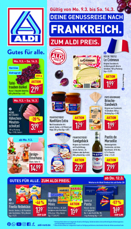 Bitte beachten Sie, dass dieser Text automatisch generiert wird und möglicherweise Fehler enthältGültig von Mo. 9.3. bis Sa. 14.3 MA DI PREIS. = E ROI DE TREFLE Mo. 9.3. - Sa. 14.3. LeC! Le Crémeux QE Bizin 4 Original französisch; imStück gereift: Brie in dE Scheiben; 150-g-Packung = VA | tkg=13.27) ij + Aus der Kühlung Ill 9 PAYS GOURMAND & Mo. 9.3. - Sa. 14.3 Brioche- kr Sandwich 1” Original aus Frankreich: EN) en = 15 Scheiben; 500-9- MEINE Packung (kg 98) GERE ähnchel FRANTASTIQUE! Konfitüre Extra Minuten- Nach französischer Art; schnitzel Ti versch. Sorten, z.B.Pfirsich und ME Feige: 265-9-Glas(kg=4.87) 5 DEL ile 4 Sn FRANTASTIQUE! Pastis de Sandgebäck Marseille Original aus Frankreich Nationalgetränk 4 mit Fruchtüllung: Frankreichs; mit Anis- versch. Sorten, z. B. Geschmack; 45% Vol. Erdbeere oder Aprikose, 0,7-L-Flasche Design- 350-9-Beutellkg =654) (Liter =11.41) Osterhase ERS seite 13 | Fe NIS 3 1499 799 = 12.3 ARIB: Lui © Haribo #£ ARLA CSE OAD Minis Pasta Finello Reibakise - Versch. Sorten, z. B. Saft Versch. Sorten, Versch. Sorten, z. B. Pizzakäse Goldbären oder Knallbunt, RE 69 ‚oder Gratinkäse; 150-g-Beutel 139° 220g bzw. 230g: Beutel 159 Ra ga er} UVP 259 re Ee 9) (ESS