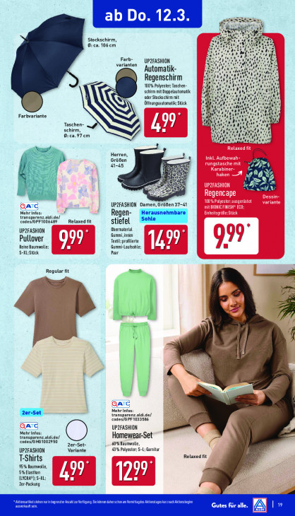 Bitte beachten Sie, dass dieser Text automatisch generiert wird und möglicherweise Fehler enthältab Do. 12.3. nee fe x u DEN Stockschirm, A vd { 9: ca. 106cm ai 1 ÿ E 2 Farb- ri Je Ban UP2FASHION nn dir en varianten (Ni . 4 À Automatik- ig vr su A] 1) ‘ Regenschirm eue se ou IL 100% Polyester: Taschen- Ie W ECH Wig eet vain schirm mit Doppelautomatik I 3 2 “4 oder Stocks chirm mit je er NN un 4 OT Öffnungsautomatik; Stück. ju 5 ye “ a. ie gi pe 1% o sil Farbvariante 9 hen ni Na À hs À nn Taschen- a A. Ô schirm, 49 Le D ; 7 mu 9: ca.97 cm ne 15 Ô vl AR) a, 4 RN url Herren, Größen 3 41-45 GE je Pe} zZ Vs iR 0 ee AJN 89 e 2: ze zB As TC, UP2FASHION Damen, Größen 37-41 Mehr Inf Regen- transparenz.aldi.de, codes/GPF1006489 Relaxed fit stiefel Et Obermaterial UP2FASHION Gummi, innen Pullover Textil; proflierte, A, 1 Reine Baumwolle; Gummi-Laufsohle; ILE [ Tu S-XL;Stück Paar Regular fit IES = ä E 7 ! hd | © if ATC pe. Mehr Infos: Zer-set. transparenz.aldi.de/ codes/G PF1033586 SATG UP2FASHION Mehr Infos: transparenz.aldi.de/ Homewear-Set codes/6 H610029 50 2er-Set- 40% Baumwolle, UP2FASHION Variante 40% Polyester; S-L: Garnitur Relaxed fit T-Shirts 95% Baumwolle, 5% Elasthan 8 ki (LYCRA®); S-XL; Tu 1299 Zer-Packung *Aktionsarikel stehen nurin begrenzter Anzahl zu Verfügung, Se können daherschon an Vornitagdes Aktionstage PLEINS 19 TT Gutes für alle.