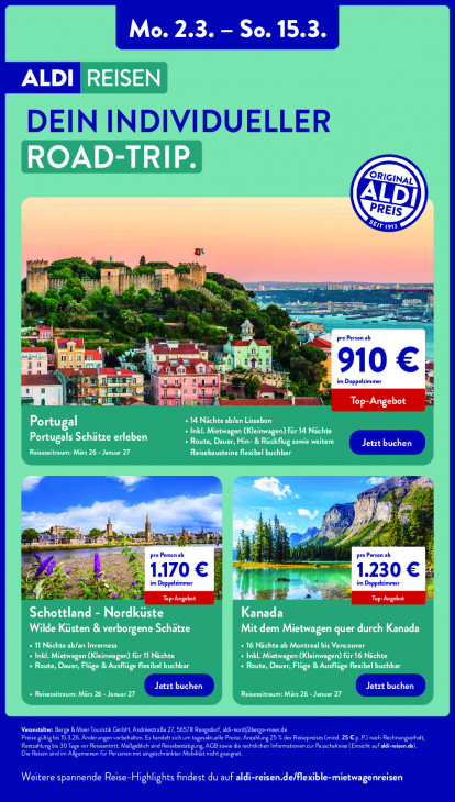 Bitte beachten Sie, dass dieser Text automatisch generiert wird und möglicherweise Fehler enthältLAN VERS — So. EXC A ALDI DEIN INDIVIDUELLER QUE es mens PS pro Person ab Ei nl In 910 €; im Doppelzimmer D DUT TE a Ei ca Top-Angebot ze, Ak mn ho zel A 3, 5 mf PY pro Personab pro Person ab 1170 € en 1.230 € 5 Wa Doppelzimmer im Doppelzimmer 2, ToprAngebot Æ zer Top-Angebot Veranstalt EN GmbH, Andrées An li-nord@berge- Preise gükig bi delt en rind. 25 € p. P) D hal, Res or Reiseantri ich Ke ie rechtlicht mati D halreise (Einsicht auf ad de). Di einen für Pe Er De TT rs Weitere spannende Reise-Highlights findest du auf aldi-reisen.de/flexible-mietwagenreisen