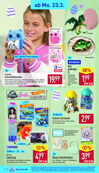 Bitte beachten Sie, dass dieser Text automatisch generiert wird und möglicherweise Fehler enthältSs x 5 > SR 4 = Là sr 5 ÿ à {} a N Farbvariante ML Te CS orachan \ A a Mit =. > ® ? BE ©. a ie Dinosaurier nr Koss Aus- 2 pers grabungs- Ei AMBIANO Ausgrabungs Sofortbildkamera spab mit Über raschungseffekt Modell NP-KSK; Fotoaufläsung: 12 MP; Video-Aufläsung: 1.920 x 1.080 Pixel: um Sammeln; T1] interner Speicherplatz erweiterbar bis zu 32 GB (microSD-Stot); 6-fach Zoom: versch. Varianten; integrierte Spiele;inkl.USB-C-Kabel; Stück Stück UVP 249 A 9 [ É Osterei-Sortiment Versch. Varianten; Puzzle, Memo, Domino Gal oder Leiterspiel;Stück BLUEV TN andBLUEY hace loges NEO Lu SudioPy Lid IT ge < ‘lieensod by BB Suds. BBC ga TM O BBC. & si N us a v 8 3Mone 3e de a MATTEL Kl De 29 Spielzeug 199 Bluey Osterkörbchen Versch. Modelle; z B. Hot Wheels Color Shifters Inkl. 1 Körbchen, 1 Figur und 1 Stickerbogen; ‚oder Barbie Beach Doll; Stück/Packung LEE) Bluey oder Bingo:Stück UVP 5:99