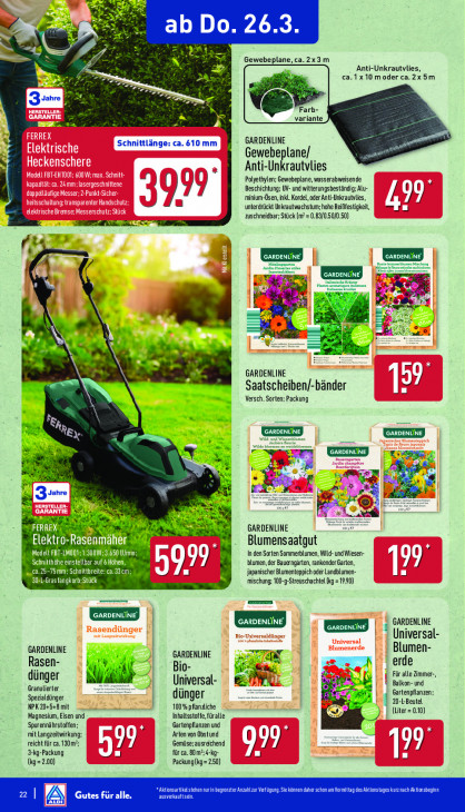 Bitte beachten Sie, dass dieser Text automatisch generiert wird und möglicherweise Fehler enthält2 ab Do. 26.3 Gewebeplane, ca. 2x3 m Anti-Unkrautvlies, ca.1x10 moderca.2x5m ig, oe 3 el variante Schnittlänge: ca. 610 mm GARDENLINE ss Gewebeplane/ LI Anti-Unkrautvlies Polyethylen: Gewebeplane, wasserabweisende Beschichtung; UV- und witterungsbeständig; Alu- minium-Ösen, inkl. Kordel, oder Anti-Unkrautvlies, AL unterdrückt Unkrautwachstum; hohe Reißfestigkeit, Tu ès zuschneïdbar: Stück (m°= 0.83/0.50/0.50) SPAS ns rs; ft en lernen ww 5 26 N+ =: Kal nl We Ey GARDENLINE Saatscheiben/-bänder 17 Fe + Versch. Sorten: Packung ee bee», "4 Bu GN Ke à AVES ET LÉ Fa m dl ex > É ds ki jf 5 2 2 a Sr pe à we © N Fr RE) SAN GARDENLINE Elektro-Ra senm In (1 Blumensaatgut Modell FBT-LMO01; 1.300W; Hl TE In den Sorten Sommerblumen, Wild- und Wiesen- Schnitthöhe einstellbar auf 6 Höhen, 79 blumen, der Bauerngarten, rankender Garten, LA PNT IKC EKL LL japanischer Blumenteppich der Landblumen- [ EINE Te mischung; 100-9-Streuschachtel (kg = 1990) | GARDENLINE < GARDENLINE + Universal- GARDENLINE Blumen- GARDENLINE x Rasen- Bio- sisi erde Ps Für alle Zimmer-, dünger Universal- ee) En Balkon- und Granulierter Gartenpflanzen; Spezialdünger dünger En Fu À 20-L-Beutel NPK20+5+8 mit 100% pflandiche (Liter = 0.10) Magnesium, Eisen und Inhaltsstoffe, füralle Spurennährstoffen; Gartenpflanzen und mit Langzeitwirkung: ‚Arten von Obstund reicht für ca. 130m}; Gemüse; ausreichend 3-kg-Packung si für ca. 80m -kç- 097 219 (kg=2.00) Packung kg= 2.50) nen daher schon am Vormittag ach Aktionsbeginn EN Gutes für alle. dora os nee