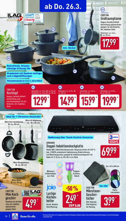 Bitte beachten Sie, dass dieser Text automatisch generiert wird und möglicherweise Fehler enthältab Do. 26.3 LGAFI CROFTON mm! NON STICK tested hr en. Großraumpfanne OR RES ‚Aluguss; Keramik-Antihaft- waw lgainfo ID 1111297242 beschichtung:spülmaschinen geeignet; für alle Herdarten inkl. Induktion; Stück | Volumen: ca. 4,6, a 8: ca.28cm f B \ EL NS > ig en rare + À 7 1 mn 14 Ti hy 1 7. 1) ist tr 1-Parsonen-Haushate # Mini-Servierpfanne, Mini-Grillpfanne, ca. 18x 20 cm ca.20 cm c 3 Jahre AMBIANO Doppel-Induktionskochplatte | Modell DIH-2; Oberfläche Glaskeramik; Temperaturstufen: 60-240 °C; 0 max. 3500 W; automatische Topferkennung: Kindersicherung ki 8 Boden-B: 12-26 cm; ca. 58x 35x 6 cm; Stück und Überhitzungsschutz; geeignet für Induktionskochgeschirr mit Mini-Bratpfanne, a | Ca.42x68cm A Blumen- Tulpen- Untersetzer, Schere, = 4er-Set Stück —— -Wok, ; ca.18 cm „ = rbvariante CROFTON Farb- ee varianten Mini-Koch B ED Lustige Geschirr- Küchen- A tücher Le 2 ‚Aluminium; für alle Herd- geschirr helfer 7 arten, inkl Induktion; Versch. Modelle; L a 80% Polyester, 77 spülmaschinen Al 20% Polyamid geeignet; Stück Stück/Packung 3er-Packung ehennurin beg ter Anzahl EL On daher schonam Vormittag it DE) 24 | Gutes für alle. a