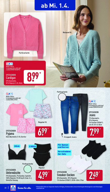 Bitte beachten Sie, dass dieser Text automatisch generiert wird und möglicherweise Fehler enthältab Mi. 1.4. if Relaxed fit / 4 | \ | | 4 | Hi ij ji Farbvariante 1 E | N dl à | 4 ATS we 077 1 4 à Farbvariante QATG Mehr Infos: codes/DEL2723 transparenz.aldi.de/ SATO Mehr Infos: “3 transparenz.aldi.de/ ‘codes/KRG1034337 UP2FASHION Jeans 73% Baumwolle, 25% Polyester, Regular fit 2% Elasthan (LYCRA®); slim fit; 38-44; Stück UP2FASHION Pyjama Reine Baumwolle; S-XL; Garnitur 1 y LA t Cropped-Jeans Stück, Pal Farbvariante Hipster UP2FASHION Unterwäsche UP2FASHION 93% Baumwolle, 7% Elasthan, Cupfutter Sneaker-Socken A 100% Polyester: 75-85 Cup B-Cbzw. S-L: AL 80% Baumwolle, 18% Polyamid, y ih Stück/2er-Packung En 2% Elasthan (LYCRA®); 35/38-43/46; 3 Paar en nurinbegre EL en da an Vom EN Gutes für alle. à in