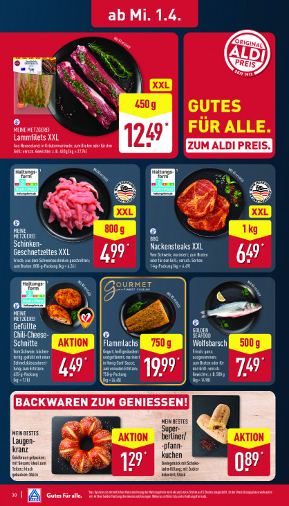 Bitte beachten Sie, dass dieser Text automatisch generiert wird und möglicherweise Fehler enthältab Mi. 1.4 2 > og, NS N eis N n ALDI à | Dar jes | ca 450g GUTES ER Ss MEINE METZGEREI FUR ALLE Lammfilets XXL 49 ‚Aus Neuseeland; in Kräutermarinade: zum Braten oder für den Grill; versch. Gewichte: z.B. 4509 (kg = 27.76) [ZUM ALDI PREIS. Haltungs- %, Haltungs 7 form form un Zen KA MERK, un Zen % Sg IL Natungtorm.e 8 = à hatunostormde # ES LS Ko, ae a rc = sf à : N eh 800g Maren Ns EE TS Nackensteaks XXL Geschnetzeltes XXL LA Vom Schwein; mariniert; zum Braten. 9: Frisch; aus dem Schweineschinken geschnitten; ‚oder für den Grill; versch. Sorten; if Zum Braten; B00-g-Packung (kg= 6.24) 1-kg-Packung (kg= 6.49) Haltungs- %%, URMET form FINEST CUISINE u Zen G %%, “ F G mener PE ri METZGEREI > hin x [rare N GOLDEN [NN SCH a SEAFOOD Wolfsbarsch SA Flammlachs Vom Schwein; küchen- Co Gegart;heißgeräuchert Er Frisch: ganz UD fertig;gefüllt mit einer undgeflänmt; mariniert ausgenommen ‚Schmelzkäsezuberei in Honig-Senf-Sauce; EIERN Egg [My ‚zum erneuten Erhitzen; den Grill; versch. Ai EE 449 HP 1999 MENG / CI (ka =748) CET] (kg= 148 Pz MEIN BESTES Li Uper- MEIN BESTES AKTION berliner/ AKTION Laugen- kranz pfann- Goldbraun gebacken: kuchen mit Sesam; ideal zum Siedegebäck mit Schoko- Teilen; frisch 129 adenfüllung; mit Zucker 089 gebacken; Stück dekoriert;Stück "Das Syst zureineitüchen Kennzeichnung der Haltungsforn wid aktuellvond Stufen auf Stufen umgestellt In der Unstelungsphaseverkaufen wir Artikel beide Haltungsformkennzeichnungen. Näheres erfährst du unterhaltungsform.de. CAR A RTE