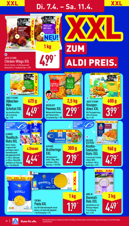 Bitte beachten Sie, dass dieser Text automatisch generiert wird und möglicherweise Fehler enthältei Ni} 1 UN X Ex Pr Fern I ni a ass 4) LEGERS 000g We XXE EZ Chicken-Wings XXL 9" Versch. Sorten, B. Barbecue oder ? ALDI PREIS Honey Garlic:-kg-Beutel (tg =4.99) (8 va a ENE ar Va pa DR ME ul TE re Ee ER > vl JACK'S FARM Hähnchen- JACK'S FARM Mini- SPEISEZEIT Knusper- Schnitzel XXL Pommes XXL dinos XXL ‚Aus dem Brustfilet; I Wellenschnitt- Pommes Mit Flüssigwürzung; LA 625-9-Packung 4 CI oder Pommes frites : EL 600-9-Packung g= 718) 25-kg-Beutel (kg=1.20) kg 65) nk ALMARE Thunfisch- ç® GOLDEN , filets XXL SEAFOOD GE Versch. Sorten, = in dgenem Saft ALMARE Alaska- und Aufguss oderin Sonnenblumenäl; Bratheringe Seelachs- XXL filets XXL Abtropfgewicht (ATG) Abtropfgewicht 4x160 g= 600gbm. (ATG) = 300g: MSC- 6Stück; MSC- Inknuspriger Panade: 4x1850 Og: MSC- bh zertifiziert zertifizi zertifidert: er-Packung 00-9 Ar) 960-g- 49 7 (kg =7.40 ATG/6.00) Dose kg = 7.30 Beute (kg = 99) won ® en Li È wann ii BON-RI Basmati- CUCINA Reis XXL Pasta XXL Spezialitätaus der er ‚Aus 100 % Hartweizengrieß; versch. Himalaya-Region: I) Sorten zB. sil oder Spaghetti: Z-kg-Packung 4 I 1:g-Packung kg= 1.19) (kg=2.25) ktionsartke teen nurinbegremter AT TC EU UT DT TUN 10 Gutes für alle. CT in