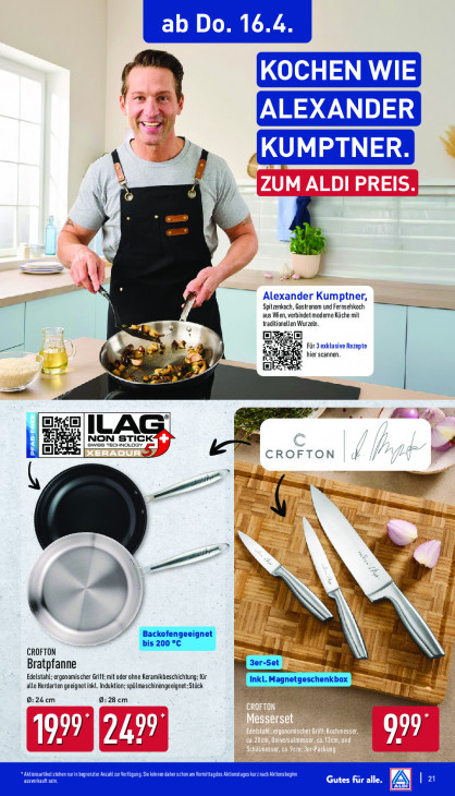 Bitte beachten Sie, dass dieser Text automatisch generiert wird und möglicherweise Fehler enthältab Do. LUN 2 KOCHEN WI N ALEXANDER re CONTES KUMPTNER. 4 Los | / EE ed at 4 Æ 2 md Alexander Kumptner, Spitzenkoch, Gastronom und Fernsehkoch aus Wien, verbindetmoderne Küche mit traditionellen Wurzeln. ft Für 3 exklusive Rezepte Ed hier scannen. bd = RE — gel SWISS TECHNOLOGY NON STICK Dre je CROFTON Sa 7 | U N, ig: an: => lg à CROFTON re Bratpfanne Edelstahl; ergonomis cher Griff; mit oder ohne Keramikbeschichtung; für alle Herdarten geeignet inkl. Induktion: spülmaschinengeeignet:Stück E 8: 24cm 9:28 cm 1999 12499 KEN saf LLC zu Verfügu nnen daherschonam Vomittagdes IN A en Gutes für 21
