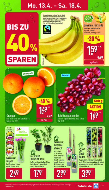 Bitte beachten Sie, dass dieser Text automatisch generiert wird und möglicherweise Fehler enthält0 Mo. 13.4. - Sa. 18.4. steht fürfaire Das unabhängig kontrollierte Firtrade-Siegel d Prämie für ie Klein- bawernund Bes Falrtradefördertbe gelet tenindenErzeugerländern nd Árbeits- inge den Uw ch Heh „deutschland de Segel de BIS ZU Gute (q=159) F4 ge ahd “| A Nd Le id bie d PR 2 © > é Ri Ee AN N Orangen Ed Tafeltrauben dunkel Lose Ware; Sorte: Lane Late; Klasse; Klasse 1; Republik Südafrika; 500-g-Schale 19° Spanien {kg = 149) kg-Preis (kg= 3.30) Farb- SP er = te varianten = Deutsche Gärtnerware NI CU \ | Kar N GARDENLINE Beeren- A strauch ie 1% In 2-LTopf: (wd Ohne Vase R ca.55-65cm Obst- hi N GARDENLINE Früchte zum hoch; winterhart; | baum 9 13 GARDENLINE 8: Tulpen ri Kübelpflanze versch. Sorten, z. Verzehr geeignet; RE | Aurzebalirt:infrligerfalischachtel: Ca. 35cm lang; 9 Stiele; ‚hoch; Herkunft: Deutschland; Im 9x9-cm-Vierecktopf; ca. 34 am B. Himbeere oder | ca.85-93m hoch; veredelt und winterhart; versch. Farben; Bund versch. Sorten; Pflanze Brombeere; Pflanze verschiedene Sorten, z.B. Apfel, Bimeoder Pflaume; Pflanze tk 17° "Aktonsartike stehen nurin begrenzter Anzahlzur Vesfügung-Sie können daher schon am Vormittag es Aktonstageskur nach Aktinsbegin ausverkauftsein. ee A BE