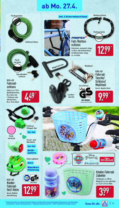 Bitte beachten Sie, dass dieser Text automatisch generiert wird und möglicherweise Fehler enthältab Mo. 27.4 Farbvariante Kettenschloss Inkl. 2 Sicherheitsschlüssel N U) Fal [2 p Farbvariante K PROFEX” Zahlenschloss Falt-/Ketten- 14 x schloss à Faltschloss, ummantelt, Länge: ca.85 cm, oder Kettenschloss, mit Reflesstreifen, Länge: y% ca. 1m; Stück Farb- variante Multitool RIDE+60 Spiralkabel- Fahrrad. schloss 8 RIDE+60 e- Tasche/ Schloss/ Fahrrad GifürMuttont Multitool schloss ce \ Versch. Modelle:Stück Länge:je ca. 18m: Spiralkabelschlass, B:ca.8mm, inkl. Lenker- 2 Schlüssel, oder tasche G= Zahlenschloss, 4 D 8092 B:ca.12mm;Stück www.ypa-zert.de > Pr B eu 3 Le Schloss- Klingel-Set - 2er-Set : Farb- 7 nd variante Front- und = 2 dr Rücklicht en a al + 2er-Set 3 StVZO- Park Se as konform EEE Dfenzp & Fahrradhelm € Ch Prunctss T , Stück Ren vS EN) FROZEN 1 ” Waschbare = Polsterung nn — nn Kinder-Fahrrad. Zubehör mi | RIDE+60 B Trinkflasche, ca. 350 ml, Gr hel Klingel, B:ca.6cm, oder Krb, Kinder- ca. 13x21 x15.cm; Stück Fahrrad Set/-Helm Versch. Modelle: me De Stück/Packung Aktionsartikel stehen nurin begrenzter Anzahl zur Verfügung. Se können daherschon am Vomittagdes Aktionstages kurz nach Aktionsbegin ausverauf sein. Stitch, Fran, Disney Princess: Disney un dsney.om; au Pat: 202581 Spin Haste LG Alightsreseved Gutes Fir alle. Áy | 17