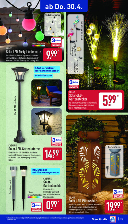 Bitte beachten Sie, dass dieser Text automatisch generiert wird und möglicherweise Fehler enthältab Do. 30 74 Modellvarianten Ü N = + NI à N 1 De A di à voi fl R 0. N \ | N Ye | IE il fi | y à | „A ° er Farbwechselfunktian > GARANTIE 1 WA ET Lj Er | Solar-LED-Party-Lichterkette | Füraußen; IP44; Dämmerungssensor; Lichtfarbe: as Flaming ca.13x70 armweiß bzw. .T. Farbwechselfunktion; ichter- 999° kette: 2.45 mlang: Zuleitung: ca.3 mlang; Stück > 2-fach verstellbar 10x70cm oder hängend nutzbar did Löwenzahn, Ê 3-in-1-Funktion Fe Ee 5 35 IP : Gs D CU te | ë ww % BELAVI Solar-LED- Gartenstecker Für außen; IP44; Lichtfarbe: warmweiß; DTE ETE ca.70-72 em hoch; Stück Ca. 61-120 cm hoch Kl 7 \L/ LAS 2 PN nn = == HERSTELLER. CASALUX KE ud fe Ee Farbvariante Solar-LED-Gartenlaterne SS A — ed \v Für außen; 8 SMD-LEDs: Lichtfarbe: re ( En \ warmweiß; ämmerungssensor; Leuchtdau ==. » 149 & ns 4 bis zu 8Std.: inkl. Befestigungsmaterial: | = Stück = LS =. = A ij ] Se P— B N U \ 2 Eu N > E Inkl. Erdspieß N == = Na und Dämmerungssensor —— ne JN CASALUX ” Solar- = Pk ] Es =, Gartenleuchte = EN N Für außen; IP44; Ca. 36 cm hoch ZT.mit Lichtfarbe: warmweiß Farbwechselfunktion oder multicolor; versch. Modelle;Stück CHEN Cu Solar-LED-Pflanzsäule ET LEE Le LED-Beleuchtung individuell platzierbar; 7 HERSTELLER. Dämmerungssensor; ca. 72cm hoch; inkl TT] Befestigungsmaterial; Stück * Aktionsartiel stehen nurin begrenzter Anzahl zu Verfügung. Sie können daherschonam Vornittagdes Ationstageskurznach Aktionsbeginn ausverkauft se. Gutes für alle. | 25