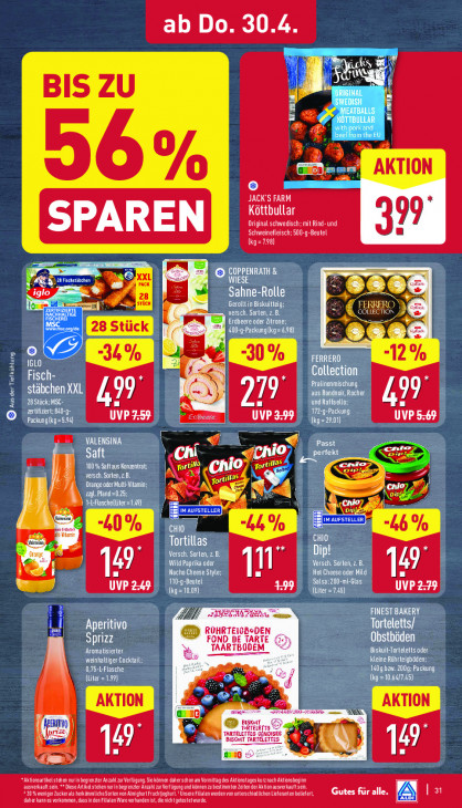Bitte beachten Sie, dass dieser Text automatisch generiert wird und möglicherweise Fehler enthältab Do. 30.4. BIS ZU ' Leib); 8 AKTION Vo DM Köttbullar 99 Original schwedisch; mit Rind- und Schweinefleisch; 500-g-Beutel ET] nu me = ae = XXL PACK eN ee iglo m ke Sahne-Rolle rück 28 a Fa cr Gerollt in Biskuitteig; COLLECTION FERRERO porn En versch. Sorten, z.B. ET ETC) 400-g-Packunglkg = 69 4, “1 2% ut) FERRERO SA = ection ischung stäbchen XXL ? LACS B 28 Stück: MSC- 99 ik 99 ENEN Dares © uns Packunglkg =594) UVP 759 UVP 3-99 UVP 5:69 Cr) VALENSINA we BR Passt Saft Foi perfekt 100 % Saft aus Konzentrat; rortil CET CS versch. Sorten, zB. KE D LITE Cu rs Ue ET = AT nd Di 7 | rl A; 4 IM AUFSTELLER) OP oh LL “46% pe Vita 3 ul) ie Tortillas KERST LGA 5 Wild Paprika oder CT LA TENTE Hot Cheese oder Mild 19 | RENT Salsa: 200-ml-Glas UVP 249 tkg= 10.09) N or] NL ed ECT Aperitivo RÜHRTEIGBSDEN Torteletts, ® FOND DE TARTE Obstböden Sprizz TAARTBODEM Biskuit-Torteletts oder ‚Aromatisierter | weinhaltiger Cocktail; kleine Rührteigböden; 0,75-LFlasche TEN Packung {Liter = 1:99) ea .64/745) ie I. En ” LE ETS, © 2‘ TAR BISGuIT LET RUES = 49 lj M = *Aktionsarikel stehen nurin begrenzer Anzahl zur Verfügung. ie können daher schon am Vormittag des Aktinstages kurznach Aktinsbeginn ausverkauft sen. "* Diese Artikel stehen nurin begrenzter Anzahl zur Verfügung und können zu bestimmten Zeiten der Aktion ausverkauft sen 30% weniger Zckerals herkänmiiche Sorten von Almighur FruchJoghur. Unsere Flialen werden von nterschiedüchenLieferanten beliefet, Gutes für alle. RS PAN LEE ET TT