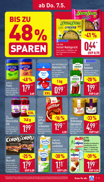 Bitte beachten Sie, dass dieser Text automatisch generiert wird und möglicherweise Fehler enthältab Do. 7.5 B qq DOC BIS ZU en CHIGK! PAU Ì x 41% 8% CEE YUM YUM Instant-Nudelgericht bh Versch. Sorten, z. B. Hähnchen- oder Enten-Geschmack; 60-g-Packung UVP 8:75 (kg=7.33) Ì Houder BAD REICHENHALLER KABANOS AIT ORN Baril IN Alpensalz XXL banos Eaux Rosso E hater Feines Siedesalz räuchert; versch. Sorten, ECC 2.B. Klassik oder Käse: a” Alpen D Packung hicha En] aaa Hek KABANOS “4 8% ELLE Er ESC) ** D 2 USE LE Versch. Sorten, z. B. 1 rg vr | Rucola oder Ross Eee] 09° Er CT zedig ed ed ES == al (LL | Ci en SEASONS D ‚BIHOPHAR Gifflar, Rote Grütze tour XXL Zimt- ialitä KST NE schnecken Versch. „Sorten, AN Waldfrucht oder Erd- LA Hefegebäck mit Zimt 19 Gelée Royale oder 99 | DCE TEEN PES er) Pr) CET QUES } ALPRO ty nus: Co LANDLIEBE Drink Haltbare FO Von Natur aus laktosefrei; Landmilch reinpflanzlich;versch. FR ‚Sorte 2.B. Mandel Dr 1,5% Fett bzw. 3,5% Fett; ER Kokos; z.T. ohne Zu SAAL 1-L-Packung [Lit = nd alpro 39% ol a Nussvoll MAN Versch. Sorten, z. B. Dreierlei Nuss & 1 99° Karamell oder Nuss 5 PATE ETT ARE] UUP 2-39 Ur? Ld CT DAT CT AEON Te CEE COL CETTE Aktionsartikel stehennurinbegrener Anzahlzur Verfügung. Sie künnen daher schon am Vrmitag des Aktionstages kur nach Akionsbeginn Gutes für alle EX]