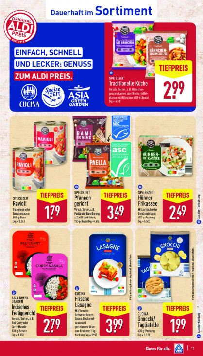 Bitte beachten Sie, dass dieser Text automatisch generiert wird und möglicherweise Fehler enthältDauerhaft im Sortiment Sr 3 I au + & ET MIT HAHNCHEN 2 8.5 - Keen EINFACH, SCHNELL 5 … 2 a UND LECKER: GENUSS Le] Ur 05 else 77 Sp SN L ms GREEN (EN y GARDEN TEE = RES = LU jde I N NM OE et CE Dore eo rend e Set, EN et eu LUI A 4 ACT FRIKASSE| K E 2% 22 di u: M — > a 42 et md . SPEISEZEIT SPEISEZEIT SPEISEZEIT Pfannen- Hühner- Ravioli gericht Frikassee Bolognese oder Versch. Sorten, z.B. 94 Mit zarter, bunter à KE 1 Tomatensauce; Paella oder Bami Goreng; Et 7 Gemüseeinlage: LE ) 800-g-Dose Z.T.MSC-zertifiziert; 450-9-Packung L: tkg=224) 750-g-Beutel (kg =4.65) (kg=553) @ aus der Tetkühtung ASK ® RED: CURRY oc ASIA CUR SALA u ie LS er os Na m 6 Are CUCINA B ASIA GREEN Frische Verpackung kann regional abweichen. Verpackungen könnenregionalabweichen. GARDEN Indisches Lasagne Mit Tomaten- Schweinefleisch- CUCINA Versch. Sorten, z.B. Fertiggericht Sauce, Béchamel- Red Curry oder sauce und Gnocchi/ Curry Masala; geriebenem Kase; Tagliatelle 7 330-g-Schale de! 27 zum Erhitzen: 1-kg- 99 600-g-Packung tkg= 845) Packung (kg = 399) (kg= 332) © Aus erKüntung
