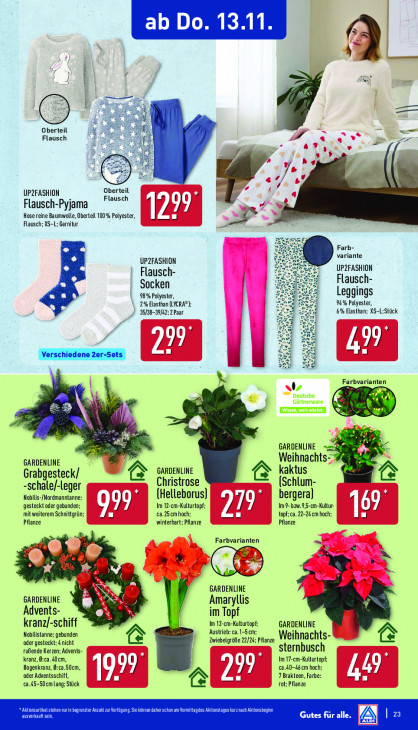 Bitte beachten Sie, dass dieser Text automatisch generiert wird und möglicherweise Fehler enthältab Do. 13.11. 5 pe Oberteil Flausch = 7 7 UP2FASHION Flausch Oberteil Flausch-Pyjama VALK Flausch; XS-L; Garnitur Hose reine Baumwolle, Oberteil 100% Polyester, [ mm 4 Farb- variante UP2FASHION Flausch- 5 UP2FASHION Flausch- Socken 98% Polyester, SRE es, Leggings % Elasthan (LYCRA); 5 er; 94% Polyester, 6% Elasthan; XS-L;Stück 35/38-39/42; 2Paar 4 7 LL] Ti \ ze Farbvarianten — GD 4 GARDENLINE GARDENLINE Weihnachts- Grabgesteck/ GARDENLINE kaktus 2 Christrose fs (Schlum- a -schale/-leger Nobilis-/Nordmanntanne; (Helleborus) bergera) gesteckt oder gebunden; Im 12-em-Kulturtopf: 7 Im 9- bzw. 9,5-om-Kultur- 7 mit weiterem Schnittgrün; QA ca. 25 cm hoch; L topf; ca. 22-24 cm hoch; [ i Pflanze winterhart; Pflanze Pflanze Farbvarianten ‚0. + 2 GARDENLINE GARDENLINE Amaryllis Advents- im Topf kranz/-schiff Austrieb: ca. 1-5cm: Im 12-em-Kotturtopf: GARDENLINE Nobilistanne: gebunden Weihnachts- R oder gesteckt; nicht 6 Zwiebelgröße 22/24; Pflanze sternbusch ruBende Kerzen; Advents- kranz, D: 40cm, 0 Im 17-cm-Kulturtopf: Bogenkra a.50cm, 77 A ca.40-46 cm hoch; 7 oder Adventsschif, [ rot; Pflanze 7 Brakteen, Farbe: ni = ca.45-60 cm Lang; Stück te Au ehen nur TL PL Knnen daherschon am Vornittag des A ch Aktlonsbeginn au sen. CEE 23