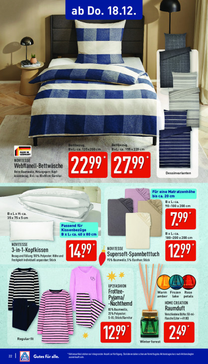 Bitte beachten Sie, dass dieser Text automatisch generiert wird und möglicherweise Fehler enthältab Do. 18.12. A = =, = = Ê = fr 20 cm MADEIN GERMANY NOVITESSE ! Webflanell-Bettwäsche 799 WN Reine Baumwolle, Melangegarn: Kopf- ht Dessinvarianten RAR Em rs 7 > BxL:ca. jr 90-100 x 200 cm G BxLxH:ca. 35x 75x5cm — Th ii kb BxL:ca. ei me e r | EEEN 180-200 x 200 cm NOVITESSE 7 NOVITESSE 3-in-1-Kopfkissen an [7] Bezug und Füllung 100% Polyester: Höhe und | Tu Supersoft-Spannbetttuch [AH Festigkeit individuell anpassbar: Stück 95% Baumwolle, 5% Elasthan; Stück ® I: UP2FASHION CSS de Frottee- Warm Frozen Rose amber lake petals — Pyjama/ IS \ -Nachthemd HOME CREATION Raumduft =S 80% Baumwolle, 20% Polyester; Verschiedene Düfte; 50-ml- S-XL:Stück/Garnitur = Flasche (Liter = 49.80) en a ee —= DT me) nn 7 TE Regular fit [ ur; Winter forest ban A TT en da CHE rad n 2 | Gutes für alle. rau in