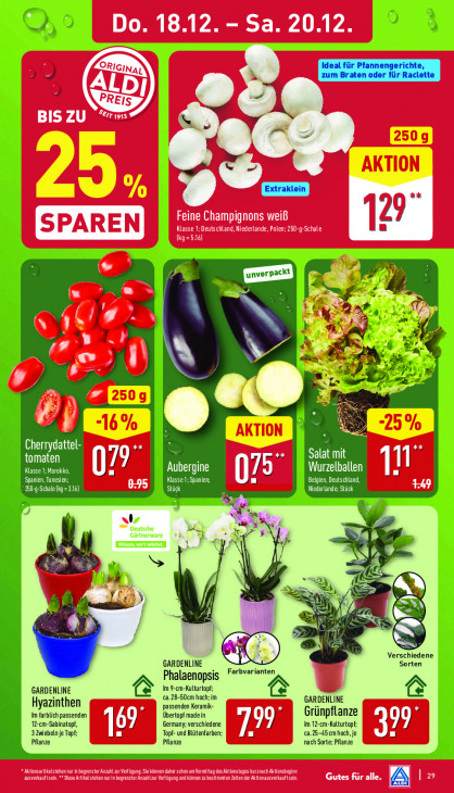 Bitte beachten Sie, dass dieser Text automatisch generiert wird und möglicherweise Fehler enthält0 Do. 18.12. - Sa. 20.12. ÁLDI BIS ZU ar en Feine Champignons weiß Klasse 1; Deutschland, Niederlande, Polen; 250-g-Schale AT aad + pn El x" (C3 > ER Ss À: 2 4 ; Ë 2 Kae N Le £ na 2 1 ce un EN =; B I FO SE 287 N) 4 zi L € PR Cherrydattel- tomaten sat mit Wurzelballen Klasse 1; Marokko, Aubergine Spanien, Tunesien; 077. Klasse 1; Spanien; 075° Niederlande; Stück Belgien, Deutschland, Eu 250-g-Schale (kg = 3:16) Stk tr ‘7 Deutsche Gärtnerware D ; ’ (1 AE / 1 (Ce ar Be D Verschiedene GARDENLINE er) Sorten Phalaenopsis Ferbverien GARDENLINE 6 Im 9-cm-Kulturtopf; ( ca. 50cm hoch im GARDENLINE Hyazinthen passenden Keramik- Im farblich passenden Übertopf madein Grünpflanze 12-cm-Sabinatopf, Germany; verschiedene 799 In 12-cm-Kulturtopf: 3 Zwiebelnje Topf, Pflanze Topf- und Blütenfarben: Pflanze nach Sorte; Pflanze ca.25-45em hoch, je BE TEN LCR RAV VETT EL EU usverkauftsein. LACE nurin begrenzter Anzahlzur Verfügung und können zu bestimmten een der Akionausverkauft sn Gutes für alle. A [EX