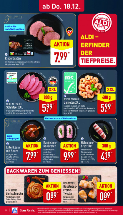 Bitte beachten Sie, dass dieser Text automatisch generiert wird und möglicherweise Fehler enthältab Do. 18.12. %, mn % DI a arr ER 2 X ALDI - A QE AKTION ERFINDER 6 m van Ba [1] Rinderbraten In Rotweinsauce: vorgegart; zum erneuten Erhitzen; 799 IEFPREIS 600-g-Packung (kg = 13.32) TIEFPREISE Haltungs- 7 form + Re Ce A % = natungstorm.de \ BR) Berl & > 800g NZ Garnelen XXL MEINE METZGEREI Geschält; mariniert; zum Braten Schnitzel XXL ‚oder für den Grill; ASC-zertifiziert; Knoblauch- 99 Frisch; vom Schwein; zum Braten oder für EI Chili oder Knoblauch-Kräuter: 400-g-Packung den Grll;800-g-Packung (kg =7.49) CAT) 2 4 Fn ei * I NS ek LL EN Hähnchen- Kaninchen- Rollbraten brustfilet ACH ENG, ‚Aus dem Rücken; Im Speckmantel: mit Sauce Dre TE Hlüssig gewürzt: zum Braten oder für Vorgegart; zum Rosmarinzweig: in emeuten Erhitzen: praktischer Ofenschale; den Grill; versch. 600-g-Packung 799 PE 09 Gewichte: z.B. 100g ni NAK (kg=22.20) (lg =1395) ur 4 \ MEIN BESTES AKTION Haselnuss- Pi AKTION MEIN BESTES creme- IG Zimtschnecke Twister Plünderteig mit Zimt- PA Fettgebäck mit 89 Zucker-Füllung: frisch 2 Haselnussfüllung: gebacken: Stick Stück *Aktionsartikel stehen nuin begrenzter Anzahlzur Verfügung. Se können der schon am Vormittag des Aktionstages kur nach Akionsbeginn ausverkauftscn. "Das stem Zurenhelichen Kennzeichnung der Hatungsformwirdaktuellvon Stufenauf5 Stufen umgestellt. Inder Umstellungs EN TA ET TELLEN phase verkaufen wr Artikel beider Haltungsformkennzeichnungen Näheres erfhrstLdu unterhaltungsform.de