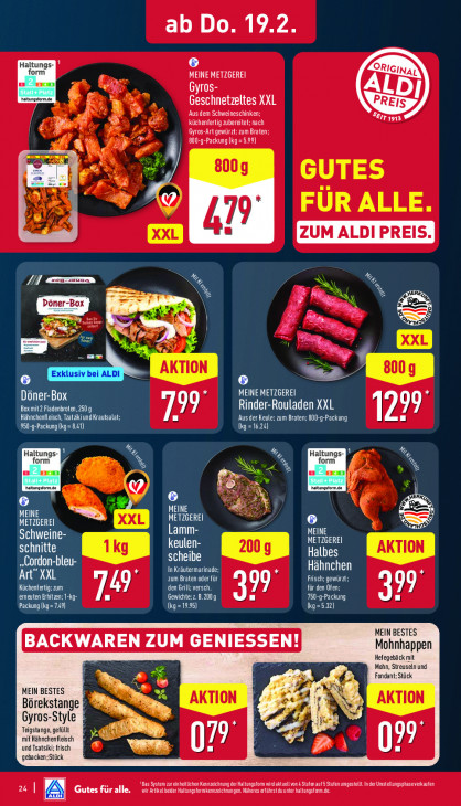Bitte beachten Sie, dass dieser Text automatisch generiert wird und möglicherweise Fehler enthältab Do. 19.2. Haltungs- 6 form MEINE METZGEREI u Zen CH 7 OL hatunstormée | 7 Geschnetzeltes XXL 2 > A ‚Aus dem Schweineschinken; er sa FA 3 + küchenfertig zubereitet; nach CA OUT ELEC Ve 800-g-Packung (kg = 5.99) Â ZE + À 800g GUTES od FÜR ALLE. A [ZUM ALDI PREIS. % VUE = AE Ë MERK Döner-Box à ’ es 1 d we N “ CL AKTION N 800g HAE MEINE METZGEREI Box mit 2 Fladenbroten, 250 g Rinder-Rouladen XXL 99 Haähnchenfleisch, Tzatäki und Krautsalat; 799 Aus der Keule: zum Braten: 800-g-Packung RER IUT EE PAIE CE 2 Haltungs- form KO 2 Haltungs- form N Im Sen u Zen + natungstorn.ce patron vl ji RG MEINE Zj MEINE a U METZGEREI em; | METZGEREI Lamm- LS ER es SAUCES METZGEREI SE LEICHE Sala Halbes OET In Kräutermarinade; Hähnchen ln ‚zum Braten oder für Frisch; gewürzt; Küchenfertig: um den Grill; versch. für den Ofen; 99 EEE y 122 Gewichte;z.B.200g SEA EN Packung (kg = 749) (AK Wg=532) MEIN BESTES Mohnhappen Hefegebäck mit Mohn, Streuseln und 2% >] Fondant; Stück MEIN BESTES Sa € OE AKTION pr AKTION Börekstange } Gyros-Style ie Teigstange, gefüllt mit Hähnchenfleisch ik] 99 und Tsatsiki; frisch u TG gebacken:Stück "Das Syste zur einheitlichen Kennzeichnung der Haltungsfon wid aktullvond Stufen auf5 Stufen umgestellt In der Unstelungsphaseverkaufen LITE TON TT ETATS 2 | A) Gutes Für alle.