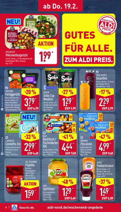 Bitte beachten Sie, dass dieser Text automatisch generiert wird und möglicherweise Fehler enthältab Do. 19.2 Sr NZ GRÜNKOHL- EB KESSEL N En TE A GUTES = LATA En EN PR ed AKTION SE ”] KLE Ad FUR ALLE Mikrowellengericht Versch. Sorten, z.B. Kesselgulasch oder EARL 199 tky=711 ©: NA 6 [Mu MOIS TRUE FRUITS CHICKEN 2 Smoothie KI EN Sobi =; C1 nl | CET oder Yellow; 250-ml. Flasche (Liter =9.16) En YOUCOOK NISSIN 2 7% ILT Soba Cu versch. Sorten, z. B. Nach asiatischer Art, Noodles Indian Style Butter Versch. Sorten, z. B. Chicken oder Japanese 379 Teriyaki oder Classic; 29 Mr 29° Style Chicken Teriyaki L'ETAT LEE 420-9-Packung kg=9.02) UVP 479 (kg= 14.33) led UT} ©} cc EN Su u iglo — ze Te FAIRE STEIXKL Fe À CD 5 rt stück. 28 Ein (eh [ER d © 3 3% "47 % LANGNESE Backfisch-/ LUE Cornetto-Eis Fischstäbchen Piccolinis Pis tazie oder Classico; KL Salami oder Drei KORE 299 16 oder 28Stück: 7289 A Käse:je24Stück: 199° UNE Era STEIN LE PTT ARE CRT QT (kg= 610/529) QE Sr CE) UVP 9:49 ER ALL SEASONS MEIN2, LIL Paprika CS TT ENIG MANGO Abtropfgewicht KELSO Co Barbecue oder Curry aus, 580-ml-Glas Liter = 6.77) Mango: 220-ml-Flasche A (kg =513AT6) prika. = y LES 3 LEG Mit ausgewählten Apfelsorten: Vi} 149 159 720-ml-6las (Liter =1.79) TEN | UNE} aldi-nord.de/wochenend-angebote EN A] Gutes für alle.
