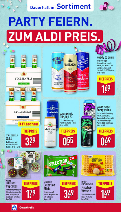Bitte beachten Sie, dass dieser Text automatisch generiert wird und möglicherweise Fehler enthält# Dauerhaft im Sortiment B PARTY FEIERN Q on, a a = à ss Ready to drink Alkoholhaltiges SILVERSTONE NE not Sorten, z.B. Rum & Cola Mischgetränk: versch. ng! à ‚oder Gin & Tonic; zzgl. Pfand = 0.25;0,33-L-Dose (Liter =5.12) GIN STOLZENFELS TONIC IN AUKOHOLHALTIGES ES MISCHGETRÄUN = Tier 1 — 10 il 0 | ms 4 [ Don u GOLDEN POWER Se STOLZENFELS MONTE EL Energydrink = (HE SCHULTENBRÄU D versch. Sorten; z.B. Taurin- und koffeinhaltig; EEEN Pils/0,0 % on 21 Guave oder Drachenfrucht; EE ee di L T.alkoholfrei; zzgl. 2.T.ohne Zucker; zz. lv Pfand = 0.25; 0,5-1-Dose Pfand 0,5-L-Dose — —-:® (Liter =1.10) (Liter =1.38) Golden | Schultepbräu pe UL (Pe 4 ces Ed STOLZENFELS Sekt EE Halbtrocken oder trocken; 3x0,2-L- kl Lj ) U ) Flasche (Liter = 5.48) Gad Tel ED gen eue, FRISCHEL chKEs u WAFE N ee 1 Smet “oo se A Due af ie 2 N MEINE CHOCEUR MEINE KUCHENWELT KUCHENWELT Cupcakes Selection Rührkuchen: mit brauner Minis Frischei- Schokaladen- oder weißer Mischungaus 5 Waffeln Puderauckerglasu:je 1 versch. Riegelsorten KL 32% Frischei-Anteil: Ds A AStück:240-q-Packung [ 500-9-Beutel 250-9-Packung [ (g=746) {kg = 6.98) (Kg =536) A