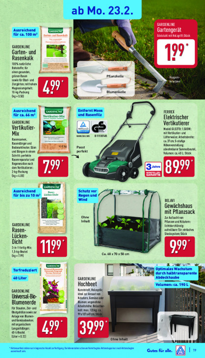 Bitte beachten Sie, dass dieser Text automatisch generiert wird und möglicherweise Fehler enthältGARDENLINE Garten und Rasenkalk Gartengerät Edelstahl mit Holzgriff;Stück GARDENLINE Garten- und E Rasenkalk 100% natürliche EN 3 Se Fi | À Rohstoffe; für ee} einen gesunden, grünen Rasen Pflanzkelle Fugen- sowie für Obst- und I kratzer Ziergarten; mithohem Magnesiumgehalt: LA 2 10-kg-Packung Blumenkelle tkg= 0.50) De FERREX Elektrischer GARDENLINE Vertikutierer Vertikutier- rom Modell 6LS37D; 1.500W; GS Mix www com 1110307405 mit Vertikutier- und Rasensamen, Lüfterwalze; Arbeitsbreite: ca.37em; 5-stufige Rasendünger und Hähenverstellung: Bodenaktivator; Säen Passt me ‚abnehmbarer Sammelbeutel, und Düngen in einem perfekt Volumen: ca.40 L; Stück Schritt; perfekte Rasenreparatur und En | a Regeneration nach dem Vertikutieren; — y Zkg-Packung TR GES 8977 U (kg=4.00) ‘es En Lücken Dicht BELAVI N Gewächshaus mit Pflanzsack Ohne Zur Aufzucht von Inhalt Pflanzen und Kräutern; GARDENLINE | lichtdurchlässi RR, aufrollbare Tüı infaches Rasen- 1 hind Lücken- J Stecksystem; Stück Dicht 3-in-1fertig-Mix; 1,5-Kg-Beutel Ca.68 x 70 x 50 cm (kg=7.9) 1 : Universal Blumenerde ja ar dan | GARDENLINE Hochbeet GARDENLINE Kunststoff, Holzoptik; ideal zur Ansaat van Universal-Bio- Kräutern, Gemüse oder Blumen; genehme, Blumenerde Arbeitshi las Für Stauden, Zier- und Obstgehölze sowie zur keit:max. 120kg Anlage von Blumen- 99x107x4 er und Gemüsebeeten; mitorganischem Langzeitdünger; 40-L-Beutel 3999 (Liter =0.12) Ohne Inhalt ASTEREE