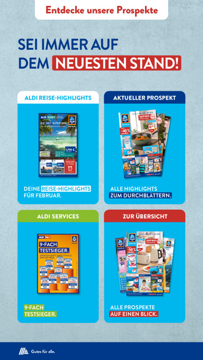Bitte beachten Sie, dass dieser Text automatisch generiert wird und möglicherweise Fehler enthältEntdecke unsere Prospekte SEI IMMER AUF DEM NEUES ANKE ND) ALDI Fa a hij = (I Cork ALDI TALK Ea 9-FACH 99 TESTSIEGER. 8 Fn En 8 = En EA