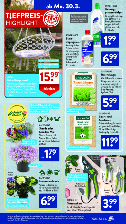 Bitte beachten Sie, dass dieser Text automatisch generiert wird und möglicherweise Fehler enthältEl POWER FORCE Gehweg- plattenreiniger Bi ANNEN renden. Vor Gebrauc Beseitigt Grünbeläge TIEFPREIS- stets Etikett und Produkt- und Schmutz von CD) informationen lesen. Beton, Naturstein- HIGHLIGHT IE wegen, Verbund- In} pflaster und Holz; 1-I-Flasche POWER FORCE GEHWEG 7 Stein- te = "9 imprägnierer > ‚Atmungsaktiver [ Fl 7 Schmutzschutz für offenporige und sau; RZ x hige Untergründe; Î für den nr ‚Außenbereich; 1-I-Flasche l GARDENLINE Rasendünger 99 Alle Nährstoffe in einem 15 Rasendünger Düngekorn; mit bis zu mit Langseitwirkung ik 3 Monaten Langzeit- wirkung; für ca. 130 m}; 3-kg-Packung; Eu kg-Preis 2.00 an | zen = V3 GARDENLINE au Sport- und =) 2 1) + à n Sport- und Spielrasen u GARDENLINE Spielrasen RE Gräsermischung für inten- Li jd ar siv genutzte Rasenflächen; 14 Staude oder für ca.: 80. m’; 2-kg- Stauden-Mix Packung; kg-Preis 6.00 Wu EL kj u Versch. Sorten, z. B. Staude, Heide-Nelke; im ca. 13-cm-Kulturtopf; | je Stück IN rd B ps EL 3 Amboss- Schere ” N Sr @ Bypass Schere Weitere © s Farben > ZR GARDENLINE k Hortensienbusch Weitere Farbe Versch. Farben; im ca. für alle Modelle N | u 19-cm-Kulturtopf; Höhe EN ca: 38-45 cm; je Stück Universal- a schere 9 rue > GARDENLINE Gartenschere Versch. Modelle; Schnittkapazität max.: 6 bzw. 10 mm; je Stück