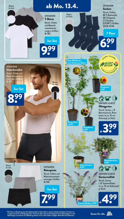 Bitte beachten Sie, dass dieser Text automatisch generiert wird und möglicherweise Fehler enthältWeitere UP2FASHION 3er-Sets ab Mo. 13.4 Socken Versch. Farben: (M Weitere 80 % Baumwolle, UP2FASHION Ter-Paare T-Shirts 18 % Polyamid, Versch. Farben 2% Elasthan (LYCRAP); Größen; und Material 35/38-43/46 zusammenset: zungen; Größen © M-XXL 7 Paar 6?? ld Weert + PFL, BEST VX zwei BEST pro Baum BLOHT BEIDIR ze Ei S ü ua ex B, & 2 Weitere A À 3er-Sets 5 3er-Set al” u u X» [ CS :) 8? UN GÄRTNERS SCHÄTZE Obstgarten be, Versch. Sorten, z. B. Beerenstrauch, Brom- ee beere; im ca. 15-cm Kulturtopf; je Stück Birne, Duo, 14.99* Brombeere, 99 3.99% pe, N x N 4“ Pr un denn N —— Ahornstrauch, 3er-Sets UP2FASHION 8.99* Retropants 2) Versch. Farben und À Materialzusammen- en ws 4e ce EE » Gartenvielfalt setzungen; Größen; 7 = Versch. Sorten M-XXL ÿ z. B. Sommerflieder; NEC PS VA Perry im ca. 19-cm-Kulturtopf; je Stück If 4 Br = + Ci Wir bitten um Beachtung, dass diese Aktionsartikel im Unterschied zu unserem ständig vorhandenen Sortiment nur ‚Aktionsbeginn ausverkauft sein. Bekleidung teilweise nicht in allen Größen verfügbar. Alle Artikel ohne Dekoration. in begrenzter Anzahl zur Verfügung stehen. Sie können daher schon am Vormittag des ersten Aktionstages kurz nach Gutes für alle. VA