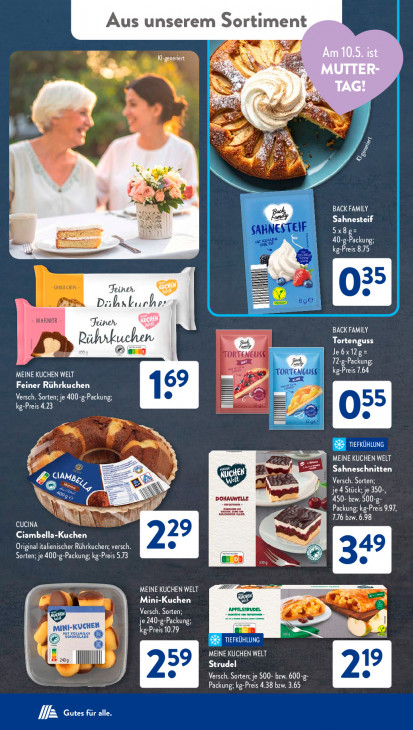 Bitte beachten Sie, dass dieser Text automatisch generiert wird und möglicherweise Fehler enthältAus unserem Sortiment à Kl-generert SE À e Ke A Le 4, LE mt BACK FAMILY ee Sahnesteif IS 5x8g= SAHNEST EIF 40-g-Packung; mm D kg-Preis 8.75 Fin 2 89e |—— Ë Di h Lich Teiner BACK FAMILY Tortenguss Je 6x12g= Ea EEA ANA AND a0 JR GUSS RAN 69 Feiner Rührkuchen Versch. Sorten; je 400-g-Packung; kg-Preis 4.23 EREN en MEINE KUCHEN WELT / Sahneschnitten CIAMB, 7 D © NES EA 3 je4 Stück; je 350-, XX Je % 450- bzw. 500-g- on Den. dl RS pen Packung kg-Preis 997, NN Ge. 7.6 bzw. 6.98 CUCINA Ciambella-Kuchen Original italienischer Rührkuchen; versch. Sorten; je 400-g-Packung; kg-Preis 5.73 En MEINE KUCHEN WELT Mini-Kuchen NCSE APFELSTRUDEL — PVE kg-Preis 10,79 En od © ins Il MEINE KUCHEN WELT I. || Strudel Versch. Sorten; je 500- bzw. 600-g- Packung; kg-Preis 4.38 bzw. 3.65 VNT N