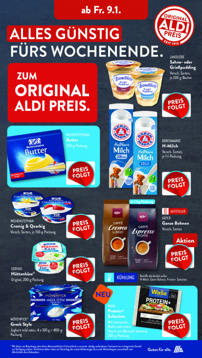 Bitte beachten Sie, dass dieser Text automatisch generiert wird und möglicherweise Fehler enthältab Fr. 9.1. ALLES GÜNSTIG err 1913 FÜRS WOCHENENDE. (PNA Sahne- oder Grießpudding nn LR Versch. Sorten, ZUM lie je 330-g-Becher deden lb N Ga ) Hs me” 9 / ORIGINAL PR 15 ALDI PREIS. FOLG 5 BÄRENMARKE weîenstephef. H-Milch Versch. Sorten, je -l-Packung F im pee PR EIS = FO LGT Cre: RER en Jet-kg-Packung | Br pre 8 [oo STE] WEIHENSTEPHAN CUS KÄFER pREIS CAFFÈ Ganze Bohnen Cremig & Quarkig EN: CAFFÈ SAT Versch. Sorten, je 150-g-Packung FOLGT LUNGO 7222114 FORTE Aktion SERVAIS Hütten ZKäse Ÿ © Hütten RUIS GERVAIS REIS Hüttenkäse® FO LGT Betrifft alle Artikel außer [am H-Milch, Ganze Bohnen, Protein+ Selection. Origrel, 2008 Packng Wasa à] ENPICK Li Lecce een nd IE ® Natur > ERO MÖVENPICK® 4 Ur A Pen pREIS mre Greek Style Joghurt mild natur, 4x 100 g = 400-g- FOLGT De * Wir bitten um Beachtung, dass diese Aktionsartikel im Unterschied zu unserem ständi vorhandenen Sortiment nurin begrenzter Anzahl Alle Artikel ohne Dekoration, zur Verfügung stehen. Sie können daher schon am Vormittag des ersten Aktonstages Lj urz nach Aktionsbeginn ausverkauft ein. Gutes für alle. fa