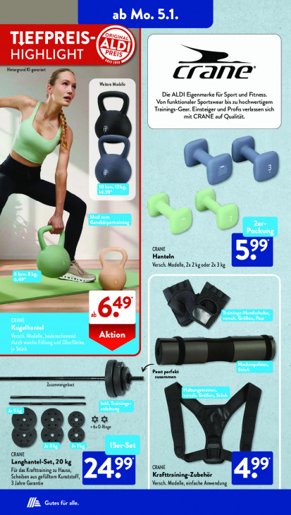 Bitte beachten Sie, dass dieser Text automatisch generiert wird und möglicherweise Fehler enthältTIEFPREIS- DI Kar I HIGHLIGHT Hintergrund Kl-generiert a Cr ANIE Weitere Modelle 1% 7 Die ALDI Eigenmarke für Sport und Fitness. LS Von funktionaler Sportswear bis zu hochwertigem Trainings-Gear. Einsteiger und Profis verlassen sich mit CRANE auf Qualität. | A > r a CRANE Hanteln EN = Versch. Modelle, 2x 2kg.oder 2x 3 kg BE in nn ‚6 past perfekt zusammen Zusammengebaut CRANE Langhantel-Set, 20 kg Für das Krafttraining zu Hause, CRANE Krafttraining-Zubehör 3 Jahre Garantie Scheiben aus gefülltem Kunststoff, Versch. Modelle, einfache Anwendung