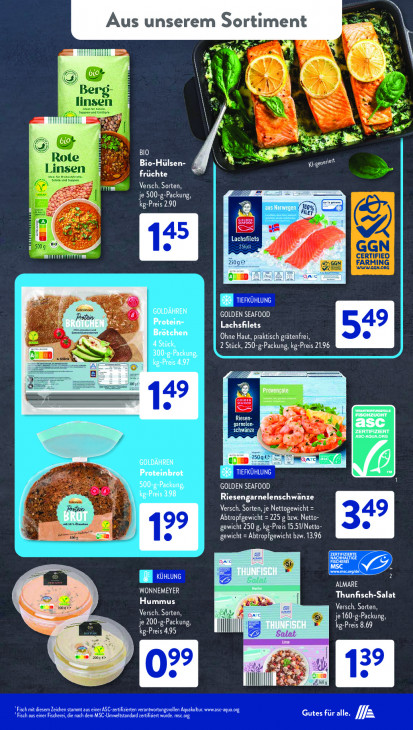 Bitte beachten Sie, dass dieser Text automatisch generiert wird und möglicherweise Fehler enthält+ à Aus unserem Sortiment © et “ | x À a \ Berg- lin je Even, soppend datie ent ua, Tri N y EN ER ER D cu Rote BIO Ed Ji Bio-Hülsen- NO ES ME Linsen früchte [ enn KORT BEA 27777 NE kg-Preis 290 100: ILE RET "à % As Lachsfilets Faso © PETE GGN mm ID CERTIFIED 2509 Ce FARM! G ac AEG Gé. GOLDÄHREN GOLDEN SEAFOOD TION Lachsfilets sale Brötchen Ohne Haut, praktisch grätenfrei 4 Stück, 2 Stück, 250-g-Packung, kg-Preis 2196 300-g-Packun; @ i PE 777 s= = 14? | en rats LE schwänze ce Pu Ad Be ÿ CN Ze £ 5 GOLDÄHREN Es Proteinbrot RES fü af NN KO GOLDEN SEAFOOD kg-Preis 398 Riesengarnelenschwänze ur, Sas Versch. Sorten, je Nettogewicht = ji {11h u ‚Abtropfgewicht = 225 g bzw. Netto: si ewicht 250 g, kg-Preis 15.51/Netto gewicht = Abtropfgewicht bzw. 1396 FENTE ac ee ra ï @ EE 2 Z Ke Æ WONNEMEYER ALMARE — Thunfisch-Salat Hummus SA zn kn ORT CH Versch. Sorten, an e160-g-Packung, e 200-g-Packun kg-Preis 8,69 kg-Preis 495 4 Ad 1609 Fisch mi diesem Zeichen stemmt aus einer ASC-zertifzirten erantwortungsvllen Aquakultur wewase-aqua og "Fisch aus einer Fischerei, die nach dem MSC-Umweltstandard zertifiziert wurde. msc.org Gutes für alle. fa
