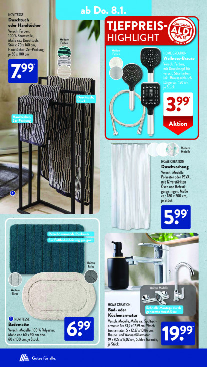 Bitte beachten Sie, dass dieser Text automatisch generiert wird und möglicherweise Fehler enthältITESSE htuch der Handtücher h. Farben, TIEFPREIS- % Baumwolle, DI ‚Be ca.: Duschtuch, Weitere HIGHLIGHT IKE 70 x140 cm, 2 tücher, er-Packung: 50x 100 cm | | u Zr fl ff (ft Gar I + fl ff Ff D] ii ir M 99 | | A 1] | ! ij banen ne, Weitere Modelle ef | | HOME CREATION | Duschvorhang Wi L Versch. Modelle, 1 Polyester oder PEVA mit 12 verstärkten | IN Ösen und Befesti- = \ ungsringen, Maße En | | | ca.: 180 x 200 cm, je Stück L A er Weitere Farbe 7 ie M] | Weitere Weitere Modelle Farbe 42 I HOME CREATION Ser Bad- oder NOVITESSE de Küchenarmatur Versch. Modelle, Maße ca.: Spültisc Badematte armatur: 5 x 33,9 x 17,59 cm, Wasch- Versch. Modelle, 100 % Polyester, tischarmatur: 5 x 12,37 x 10,86 cm, Maße ca.: 60 x 90 cm bzw. Brause- und Wannenfüllarmatur: 60x100 cm, je Stück 19 x9,23 x13,02 cm, 5 Jahre Garantie, je Stück