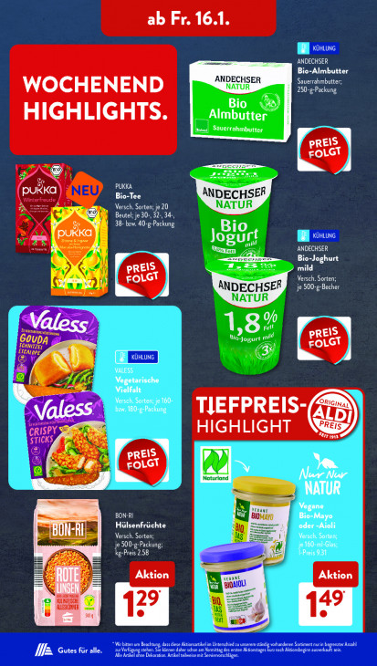 Bitte beachten Sie, dass dieser Text automatisch generiert wird und möglicherweise Fehler enthältab Fr. 16.1. Bouc meren ANDECHSER ANDECHSER Bio-Almbutter WOCHENEND NATUR 250-g-Packung Sauerrahmbutter; 5 Bio ke HIGHLIGHTS. Almbutter is] Sauerrahmbutter 130 FOLGT DE: PUKKA NEU Bio-Tee ANDECHSER Versch. Sorten; je 20 NATUR 4 Beutel; je 30-, 32-, 34-, 38- bzw. 40-g-Packung Bio Vie LAT mi | LS ne % ANDECHSER Bio-Joghurt pREIS APT mild Var FOLGT ANDECHSER PSE, NATUR 0% Fett AE UD Bio-jogurt mil FOLGT € N 1 TIEFPREIS- HIGHLIGHT 2), Ser ia A ev 2@& Naturland u EGANE Rd — BON-RI AN Hülsenfrüchte PET Versch. Sorten; kg-Preis 2.58 = Aktion NEGARE a IINARISCH LO NSS i 49 Ë ALLESKUNNER vec sg