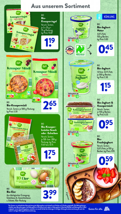 Bitte beachten Sie, dass dieser Text automatisch generiert wird und möglicherweise Fehler enthältAus unserem Sortiment @ BIO Knusperriegel Bio- ad £ Knusperriegel rx LÉO BIO je 3x 25 Bio-Joghurt æ, PAU = NATUR Natur Knus D= ‘per “riegel 1 kg-Preis 15.87 \o B 3,8 % Fett; 1% Sc 150-g-Becher; [haftungstorm.de) = kg-Preis 3.00 » FE 23450) So SR Zy we 8 LT 5 9 IS 04° turland Le ee BIO Knusper Müsli 52 x a Bio-Joghurt Knusper Müsli | 1,8 bzw. 3,8 % Fett; je 500-g-Becher; Fettarme Jogh kg-Preis 230 A hj Fl =! —| \ 5 Def. 4 N sog 115 9 es, | BIO BIO Bio-Joghurt & 65 ESS Bio-Knuspermüsli JOGHURT & Knuspermüsli Versch. Sorten; je 500-g-Packung; nuspermüsli Versch. Sorten; kg-Preis 530 & t° BANANENJO je 150-g-Becher; kg-Preis 6.33 JOGHURT & EU & nuspermü. JOGHURT Knusper nsche Snack Bio-Knus 025 knäcke-Snack a oder -Scheiben 234 u Versch. Sorten; BIO Guru U) Bio- Packu LC 11.67 bzw. 8.75 Fruchtjoghurt Mo mu! in Versch. Sorten; = 3,8% Fett; je 150 en Becher; kg-Preis 393 x ze Joghurt À a 17° gi Be mis PA 59 — (m Bar EE U y Zy ES 10 Eier eo AUS ÖKOLOGISCHER ERzEUEUNG Is / Pe I) Ee er BIO a Ze Bio-Eier 99 Aus ökologischer Erzeugung; # Güteklasse A; Gewichtsklasse À s. Etikett; 10er-Packung Das System zur inheitlichen Kennzeichnun ‚der Haltungsform wird aktuell von 4 Stufen auf 5 Stufen umgestellt. Die Haltungsformen ethalten neue Bezeichnungen; die Hatungs f form 4 (Premium) wird zudem in Haltungsform 4 (Auslauf/Weide) und Haltungsform 5 (Bio) aufgeteilt. In der Umstellungsphase verkaufen wir sowohl Artikel der bisherigen 4-stufigen Haltungsformkennzeichnung as auch der Gutes für alle. fa neuen 5-stufigen Haltungsformkennzeichnung