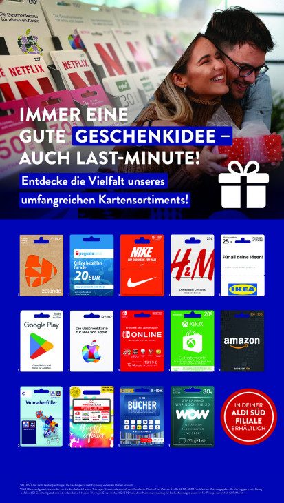 Bitte beachten Sie, dass dieser Text automatisch generiert wird und möglicherweise Fehler enthältaD al cr fe Seschenkkane für alles von Apple À : = KEN A NEI FA RK B % 15 u = es = gi DE AU LAST-MINUTE un PTS a HER 25€ EI NE Für all deine Ideen! = an Das perfekte Geschenk ns > 10-250: ® E A li Det Google Play Die Geschenkkarte Een für alles von Apple CBONLINE amazon L 19,99 € 12 En eG u |.) AB Wunscherfüller Ni IN DEINER ALDI SÜD [ae eo CN FILIALE €. IE Ur DCS ERHÄLTLICH il = En