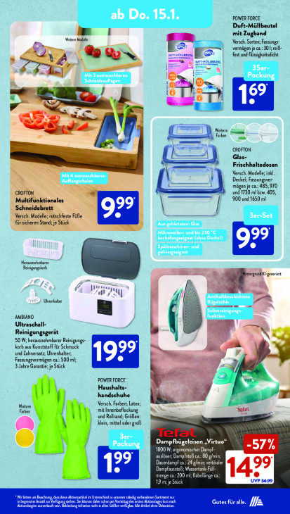 Bitte beachten Sie, dass dieser Text automatisch generiert wird und möglicherweise Fehler enthältPOWER FORCE Duft-Müllbeutel dm Weitere Modelle mit Zugband Versch. Sorten; Fassungs- pen vermögen je ca.: 30 |; reilß- fest und flssigketsdicht =) A De TE En de; >, —— NZ = Fo | Weitere Farben LS À pa af CROFTON Glas- mn Frischhaltedosen Versch. Modelle; inkl. \ — Deckel; Fassungsver- mögen je ca.: 485, 970 und 1730 ml bzw. 405, 900 und 1650 ml ] Herausnehmbarer Reirigungskorb 4 gd -generiert = Ni Ai re W Al Uhrenhalter ze me AMBIANO Ultraschall- Reinigungsgerät 50 W; herausnehmbarer Reinigungs- | korb aus Kunststoff für Schmuck und Zahnersatz; Uhrenhalter; Fassungsvermögen ca.: 500 mi; AZ 3 Jahre Garantie; je Stück POWER FORCE À Haushalts- handschuhe Versch. Farben; Latex; NEN Br Weitere mit Innenbeflocku: E Tefal Farben Venn und Rollrand; Größen: klein, mittel oder groß « Dampfbügeleisen „ [A1 T3 kr a) LEONA Ei EN AEL Dauerdampf ca: 24 glmin; vertikaler Dampfaussto Cent menge 00 ml; Kabellän LES Stück