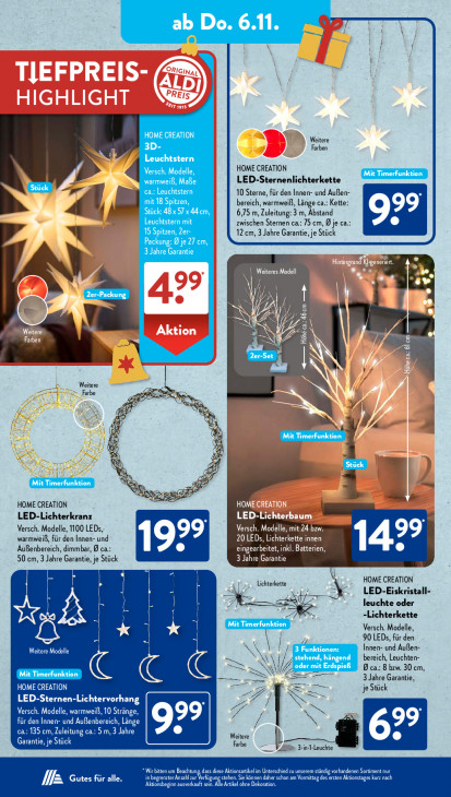 Bitte beachten Sie, dass dieser Text automatisch generiert wird und möglicherweise Fehler enthältab Do. 6.11 \ BON es NTO Weitere 3D- Farben Leuchtstern Versch. Modelle, HOME CREATION warmweiß, Maße LED-Sternenlichterkette Stück ca. MA 10 Sterne, für den Innen- und Außen- Amen mit 18 Spitzen, bereich, warmweiß, Länge ca.: Kette Stück: 48 x 57 x 44 cm, 6,75 m, Zuleitung: 3 m, Abstand Leuchtstern mit zwischen Sternen ca.: 75 cm, Dje ca 4 15 Spitzen, Zer. 12cm, 3 Jahre Garantie, je Stück Packung: D je 27 cm 3 Jahre Garantie 2er-Packung ha N \; N TE 4 ré Weitere Farbe a, Id A % FA 2 & HOME CREATION ale) LED-Lichterkranz (KE Versch. Modelle, 1100 LEDs, TZ VAN Ed warmweiß, für den Innen- und ONE ON ‚Außenbereich, dimmbar, Ÿ ca. eingearbeitet, LE Pen F Et 50 cm, 3 Jahre Garantie, je Stück 3 Jahre Garantie Lichterkette HOME CREATION LED-Eiskristall- | Tad leuchte oder | | -Lichterkette Versch. Modelle % | 90 LEDs, für den Weitere Modelle 4 6 ng 3 Funktionen: Innen- und Außen \ À stehend, hängend bereich, Leuchten- 2 Á oder mit Erdspief ® ca.: 8 bzw. 30 cm Mit Timerfunktion K 3 Jahre Garantie. HOME CREATION LA je Stück LED-Sternen: ichtervorhang le Versch. Modelle, warmweiß, 10 Stränge, DE, KETEN OT LEN ENTE CC ca: 135 cm, Zuleitung ca.: 5 m, 3 Jahre Weitere Garantie, je Stück Farbe -ind- el TE | = dass diese Aktionsartikelim Unterschied zu unserem ständig vorhandenen Sortiment nur M Gutes für alle. ‚Aktionsbeginn ausverkauft sein. Alle Artikel ohne Dekoration. in begrenzter Anzahlzur rfügung stehen. Sie können daher schon am Vornittag des esten Aktionstages kurz nach